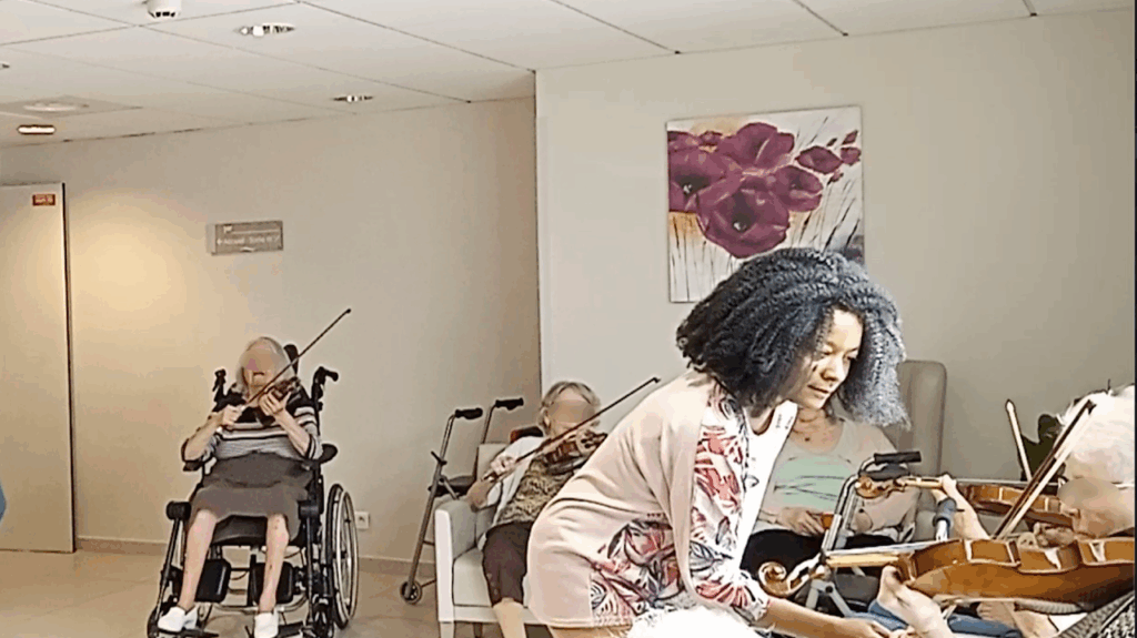 Les ateliers de musicothérapie avec les violons et les cloches musicales stimules les fonctions cognitives des seniors, leur estime de soi et permettent de tisser des liens entre eux